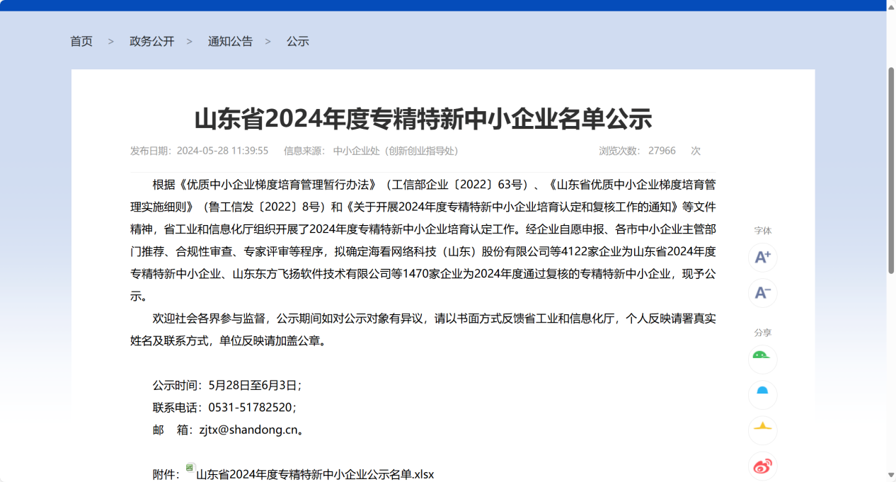 近日,山東省工業(yè)和信息化廳公示了山東省2024年度專精特新中小企業(yè)名單。經(jīng)自評申報、市級審核推薦、省級專家評審等程序,山東水發(fā)黃水東調(diào)工程有限公司進入公示名單,順利通過山東省2024年度專精特新中小企業(yè)認定。